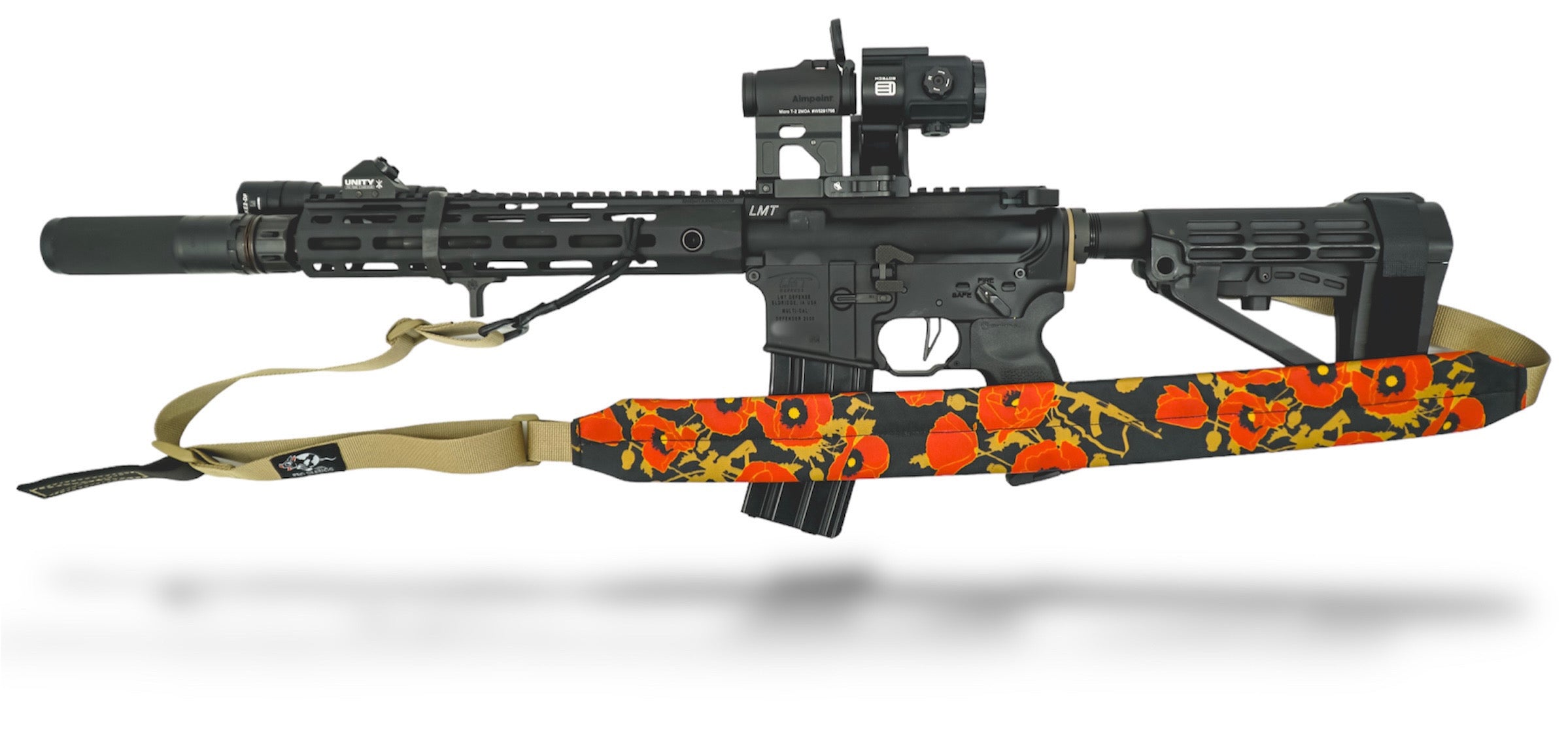Probably the most sold regularly-stocked padded sling, Poppies of War, will now be available as an unpadded sling. I was able to get a handful of Poppies of War webbing...